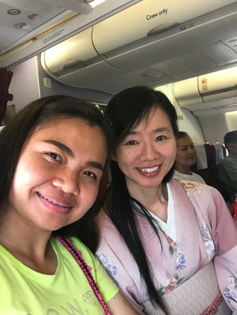 バンコクへ向かう飛行機の中で隣り合わせた可愛いタイの女の子♪ 友達3人で福岡に旅行に来ていたそうです。とっても楽しかったと楽しそうに語ってくれて私も嬉しくなりました。