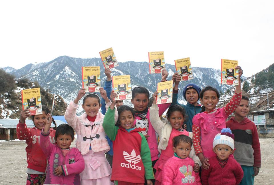 アイキャッチ画像にも使用していますジュムラという山の方の寒い地方の子供たちです。絵本を手にする機会はないのでとても喜んでくれたそうです。かわいいですね♪