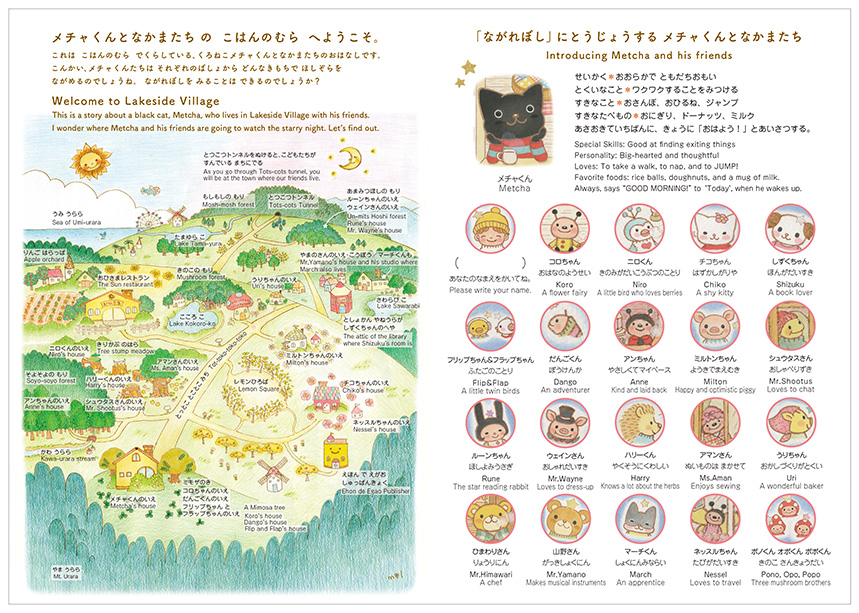 湖畔の村の地図とメチャくんたちの紹介