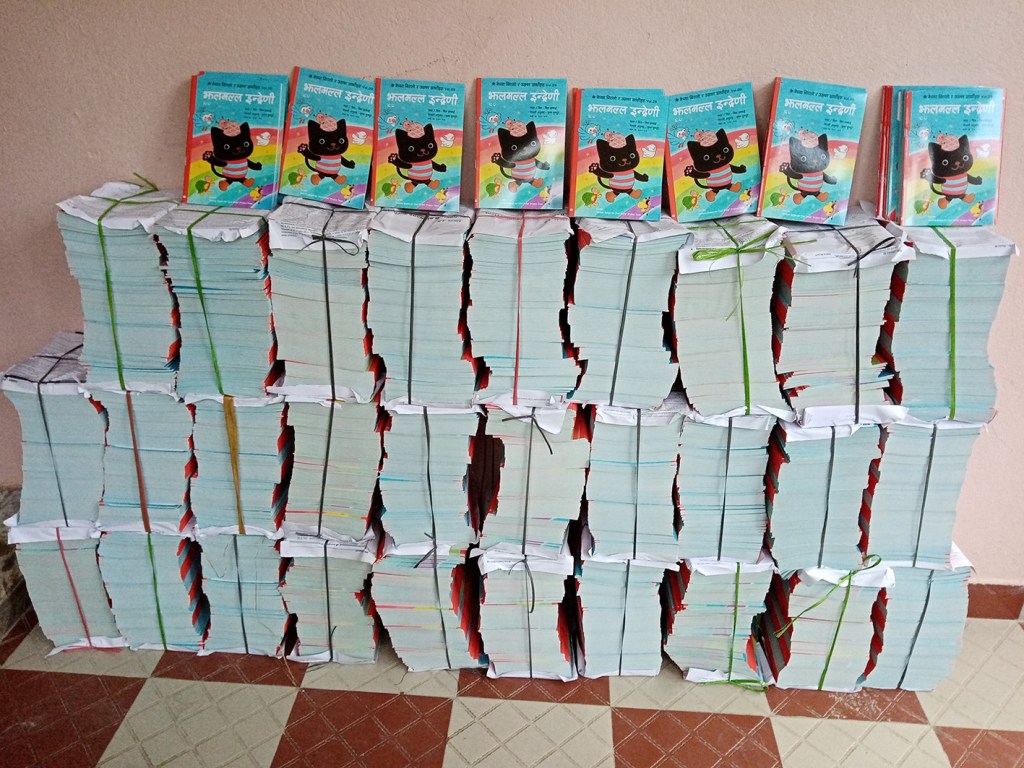 さてさて、タイトルの1年5ヶ月ぶりに…というのは、ついに、メチャくん絵本「にじ」のネパール語版「ジャラマッラ インドレニ」が現地で完成したんです!