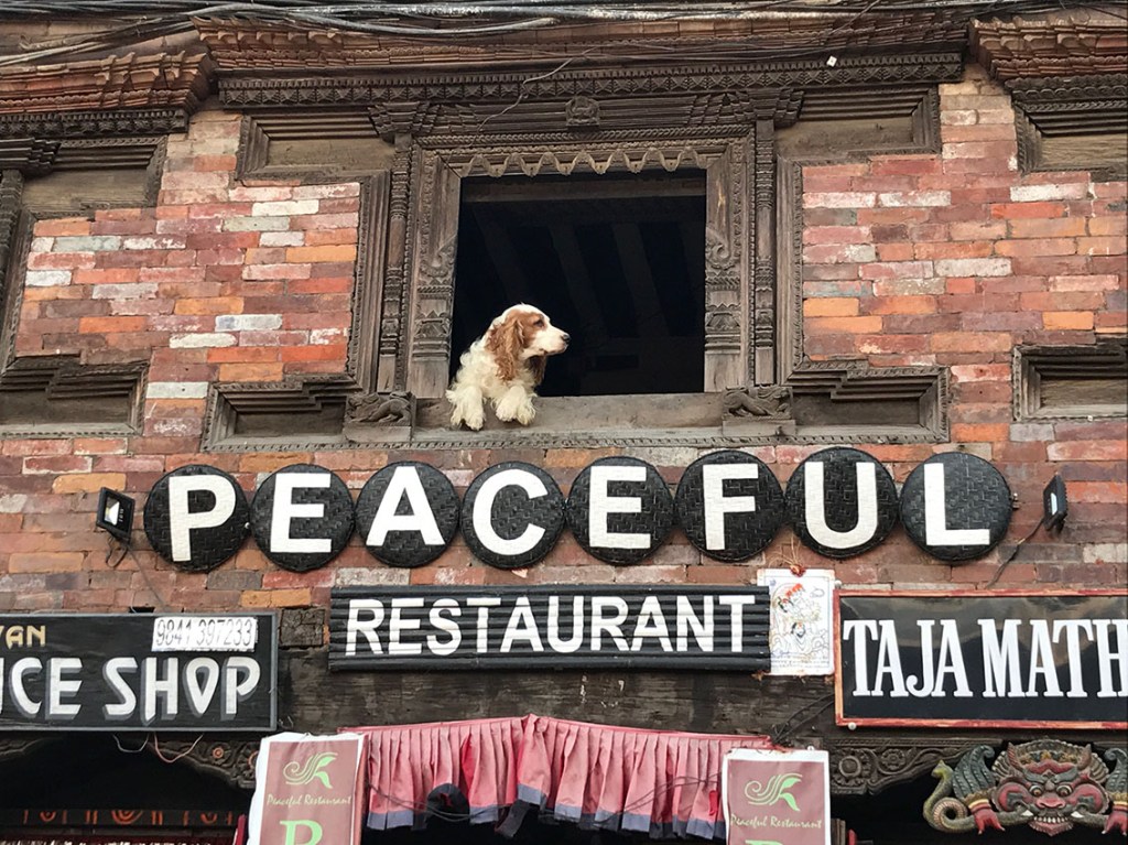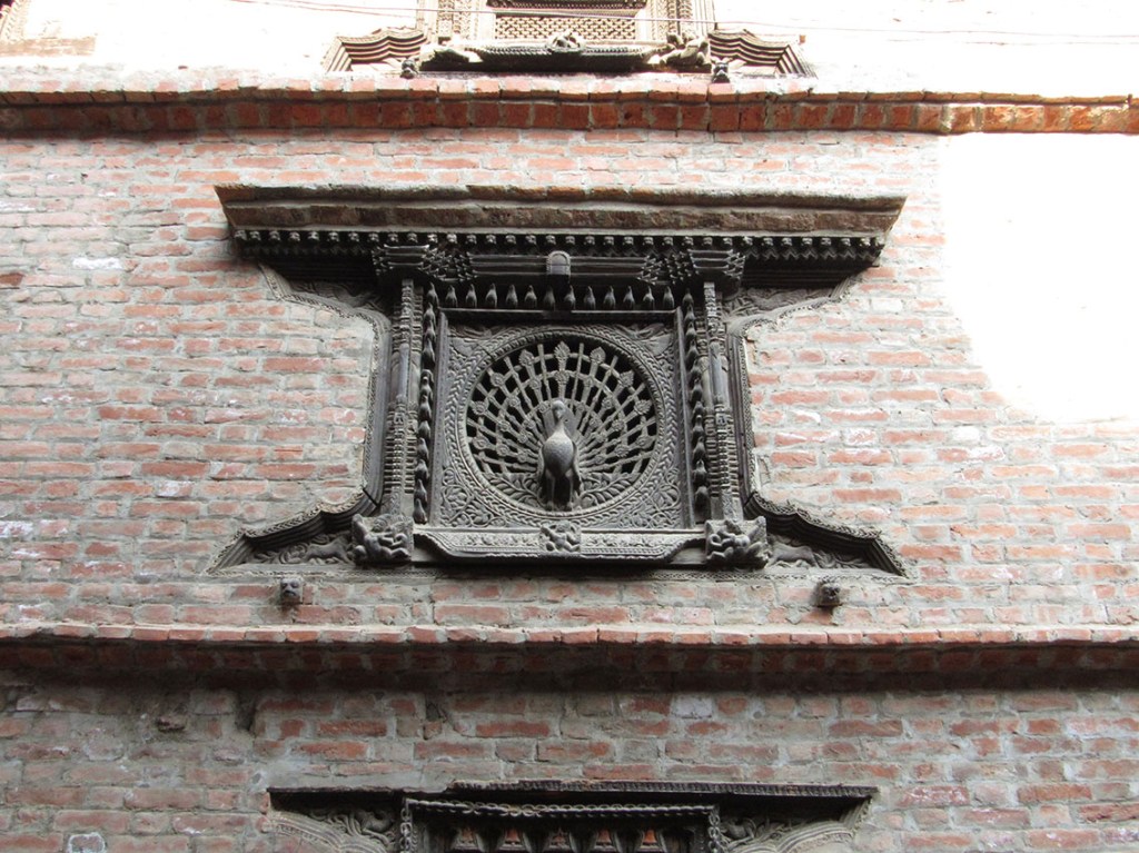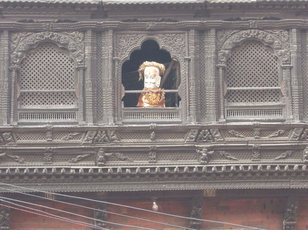 ネワール族のネワール様式の建物は本当に窓が多いんです。誰か窓から見てる…。