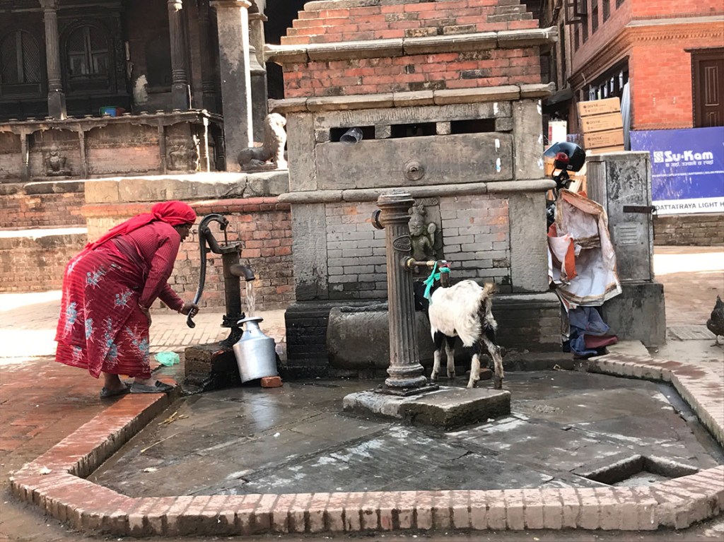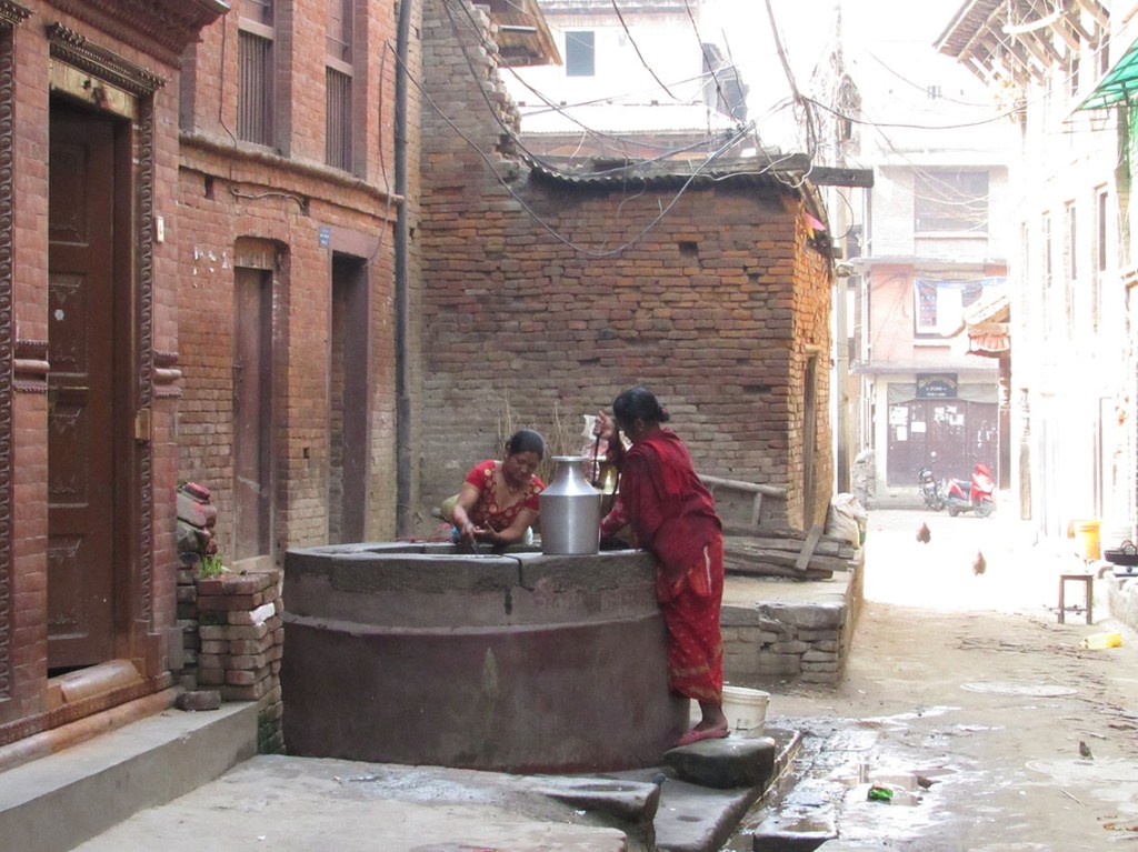 こちらは井戸です。2017年時点で首都カトマンズでも水道管が通っていないので、みんな井戸や水汲み場、給水車などからお水を調達しています。
