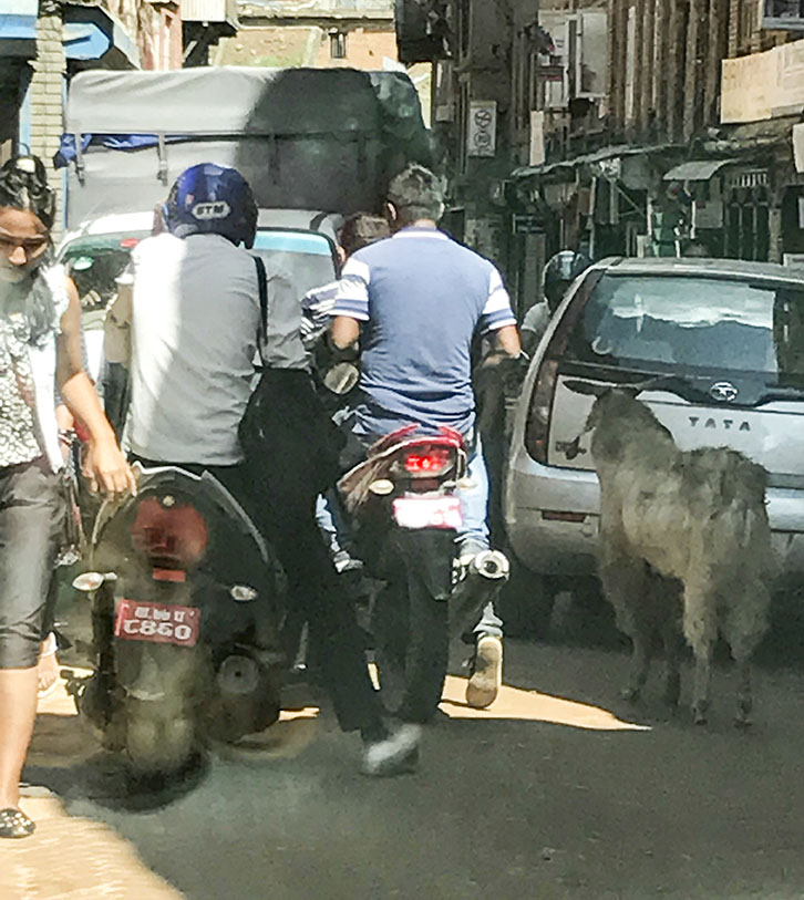 なんだか全てがすごく面白いんです!!カトマンズの移動が続くと ヘトヘトになるのですが、オートバイに家族4人くらいで乗っていたり、ヤギや布団や家具まで乗せて運んでいたり、オートバイをオートバイで運んでいたり、車からは人があふれていたり、と毎回新しい発見があって とてもゆかいです。
