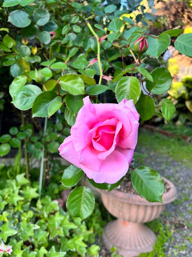 そして、モッコウバラのお花が終わった後はピンクのバラが次々に咲きはじめ、小さなエリカ(本当は別の名前があるのかもしれない)も可憐です♪