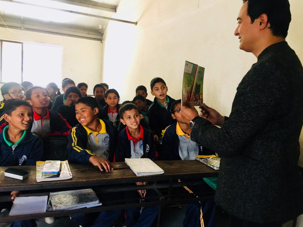 今回、渡航直前に知りあいになったため、東ネパールの学校へ行くことはできませんでしたが、カトマンズにある事務所に友人のディパーソンとメチャくん絵本を届けに行ってきました。
