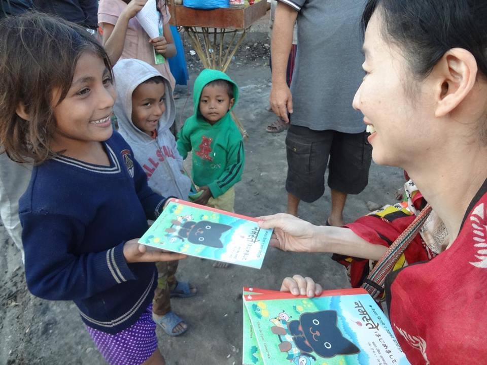 外に出ると学校に通っていなくて文字が読めない子供たちが集まって来ていました。