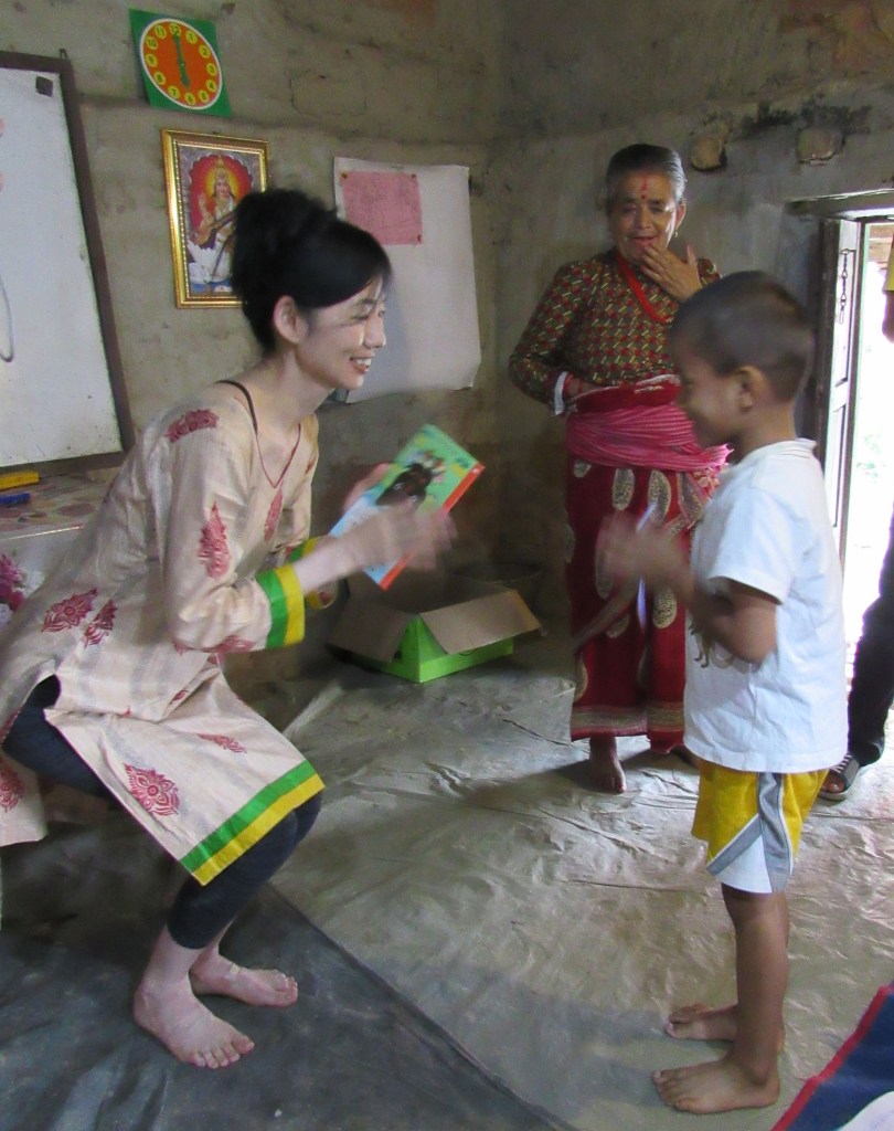 この少年が「ナマステ」を暗記して朗読してくれた子です。「チッティ」を渡すと本当に本当にうれしそうに受け取ってくれました。