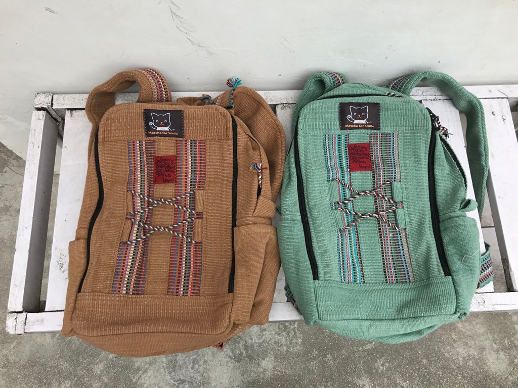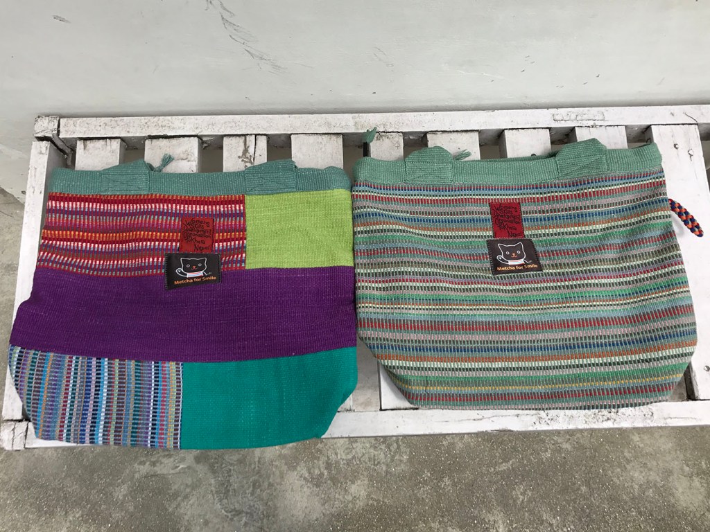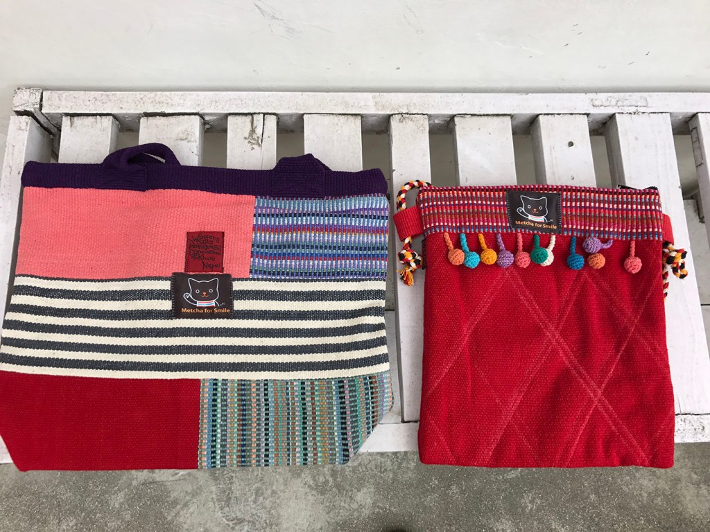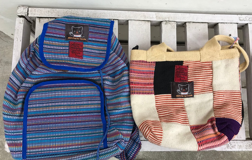 こちらはネパール女性の自立支援のために作られた団体 “Women’s Skills Development Organization” さんのバッグです。そちらとメチャくんがコラボレーションしたのでふたつのタグを並べてつけてもらいました。