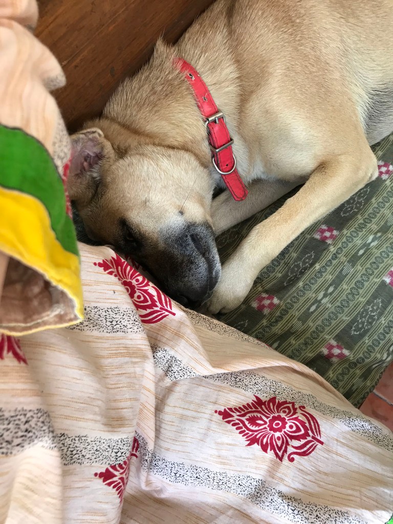 インディラに「みる !どうしたの!?」と驚かれて「えへへ。」と事情を説明したり、バッグを見せたり、お茶を飲んだり、翌朝 4時半にどうやって みるを起こすかを話しあわれたりして過ごしました。