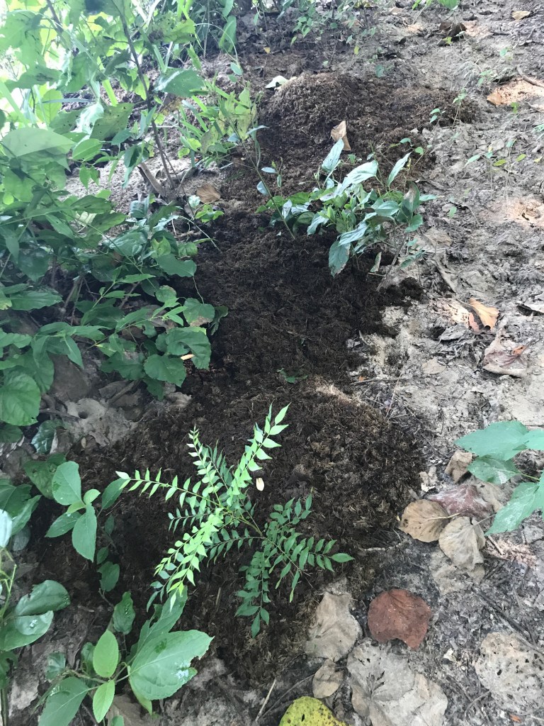 実は、このすぐ隣で大きくて立派な雄鹿が亡くなっていたのです。驚きました。そして、まだ形が全く崩れていなかったからか不思議なのですが、コワイとも、きもち悪いとも思いませんでした。ただ自然に還っていっているその姿に圧倒されました。これがジャングルなんだ、と感じました。