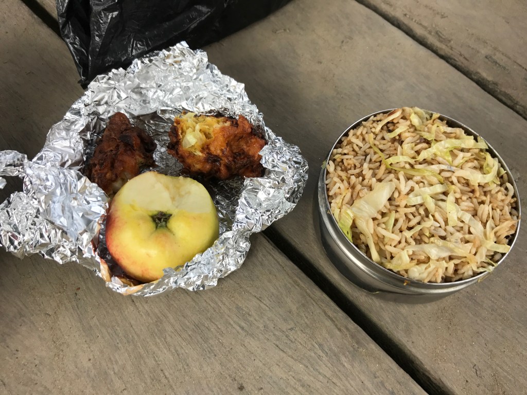 ベジフライドライスと、りんごと、野菜のフリッターのようなもの。