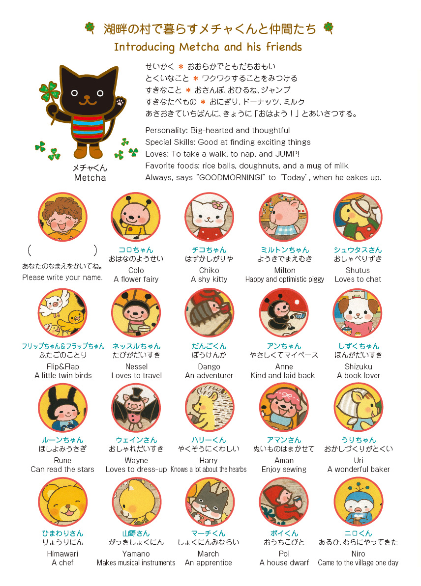 メチャくんたちが暮らす湖畔の村では、生活する環境も大きさも色も得意なことも全く違う動物、虫、妖精、そして人が助けあい仲良く愛をもって毎日を送っています。日々の中で小さな幸せや喜びを見つけ「いま、ここ」にある、かけがえのない日常の輝きを大切にしながら。