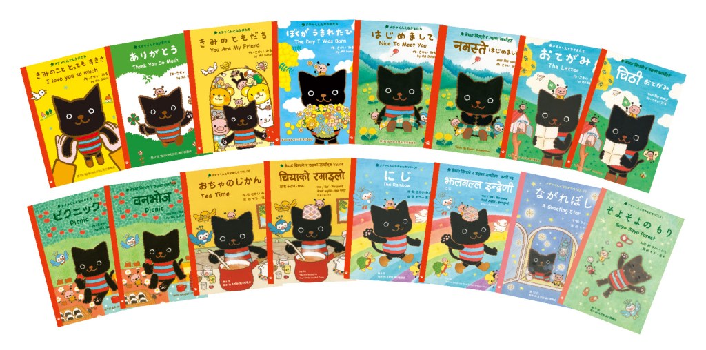 By this project Miru is newly making “Metcha The Black Cat And His Friends” named Metcha Books series every year. By our supporters all over Japan and some other countries, we are providing these books by free to Eastern Japan, and Nepal where has been hit by big earth quake. Now the total amount has become 140,510 books.